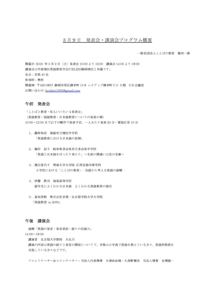 ことばの教育からのお知らせ、イベント案内など最新情報をお伝えします